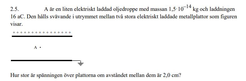 Den nedre plattan är ju jordad så mellan den och oljedroppen kommer det inte uppstå någon attraktion. Men tydligen uppstår det en attraktion mellan den positiva plattan och droppen, trots att båda är positivt laddade?? Hur kommer det sig? Borde inte den övre plattan egentligen stöta bort oljedroppen?