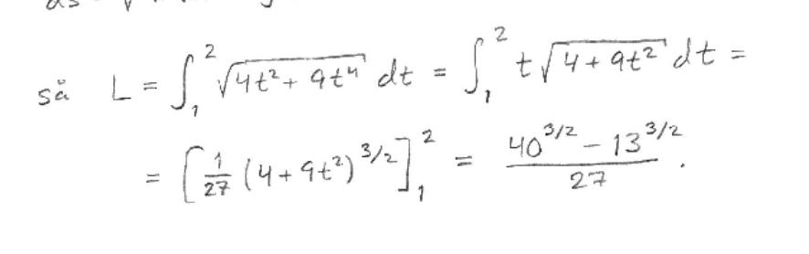 Av en händelse fanns det en faktor som innehöll t, bara t, utanför rottecknet, vilket gjorde att man kunde formulera t*(4+9*t2)0,5 som resultatet av deriverandet av ett (relativt) enkelt uttryck där t:et utanför faktorn som vi tar roten ur på kom ifrån att inre derivatan (9*2*t) kommer innehålla ett ensamt t som faktor.