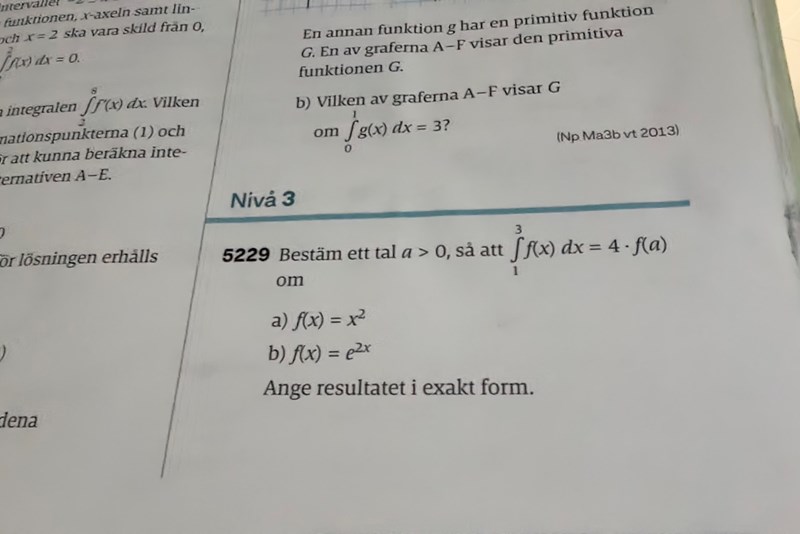 På detta har hittat att integralen är (e^6 - e^2)/2