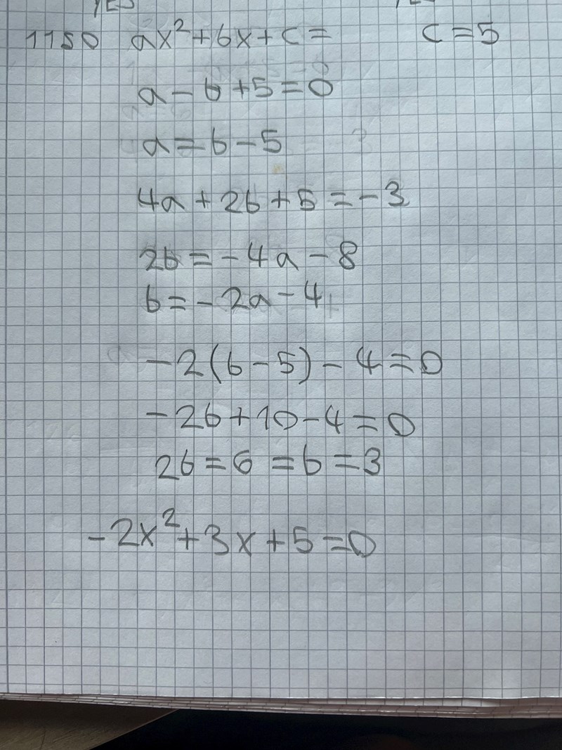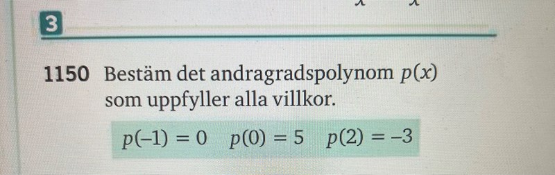 Jag har försökt lösa om denna uppgift flera gånger men förstår inte hur jag kommer fram till omvänd slutresultat. Svaret är -3x^2+2x+5 men jag kommer fram till -2x^2+3x+5