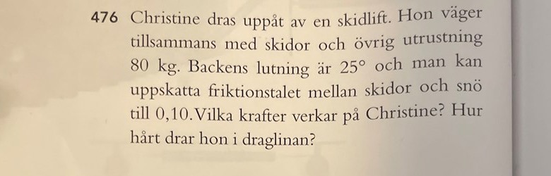 Hej! Jag behöver hjälp med att lista ut hur hårt Christine drar i draglinan i denna fråga: