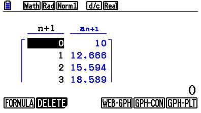 Tryck på F6 och miniräknaren kommer att beräkna ett antal element i den rekursiva talföljden: