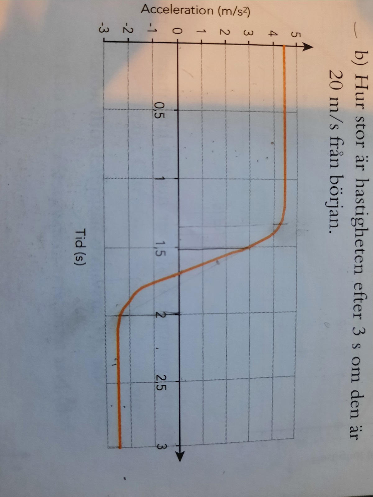 Hur hittar man/hur stor är hastigheten efter 3 s om den är 20m/s från början?