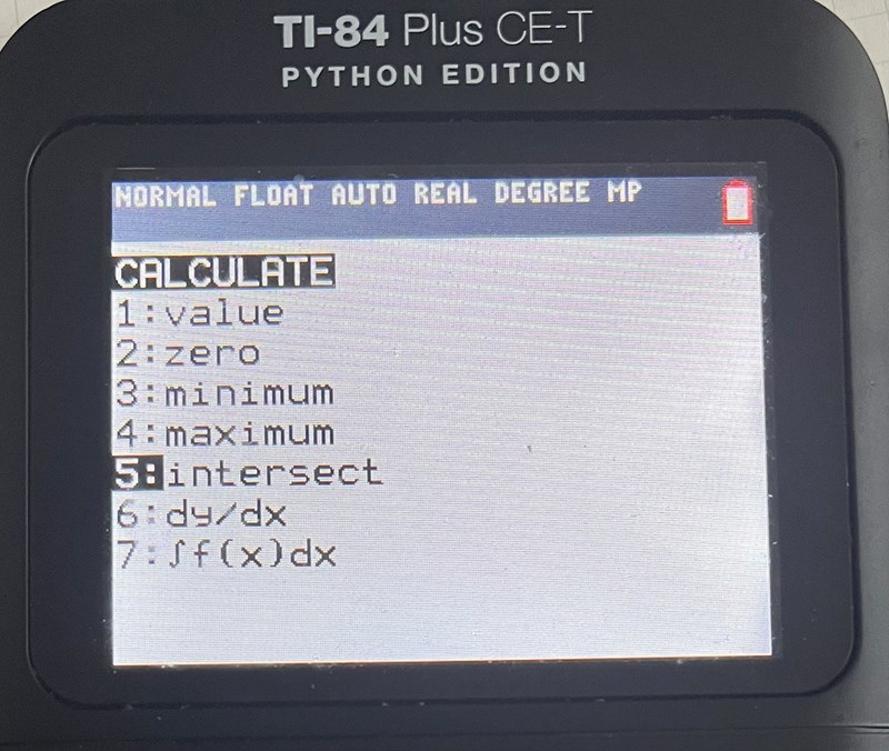 Om du ska använda intersect måste du ha två funktioner. Rita in , så borde det gå.