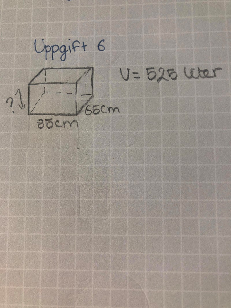 En frysbox botten har måtten 65 cm x 85cm. Frysboxens volym är 525 liter. Hur hög är frysboxen?