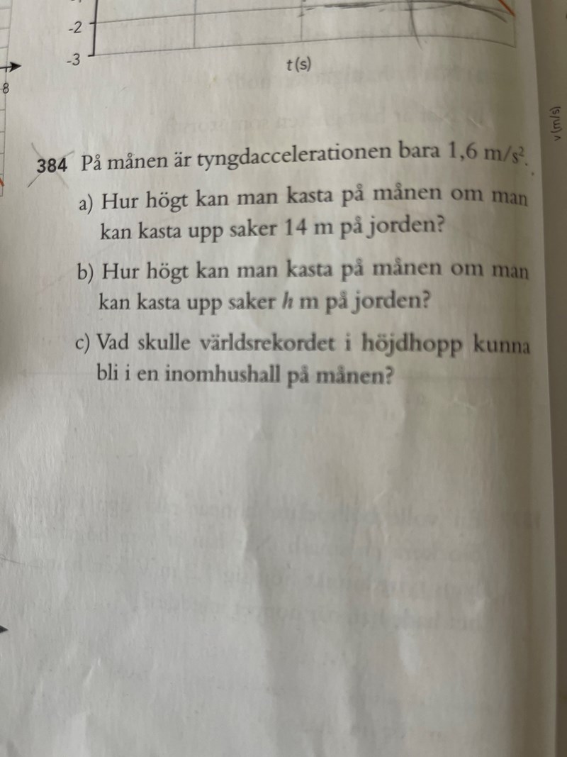 men sedan vet jag inte hur jag ska komma vidare. Att sätta in tiden i en formel med månens tyngdacceleration känns meningslöst, det lär ju ta längre tid för den bollen eller stenen på månen om man kastar med samma kraft för att accelerera ner mycket långsammare. Samtidigt vet jag ju inte start hastigheten så förstår inte hur jag ska kunna göra några beräkningar.