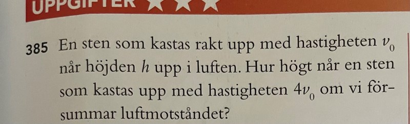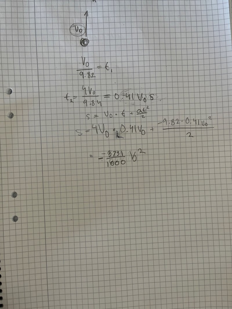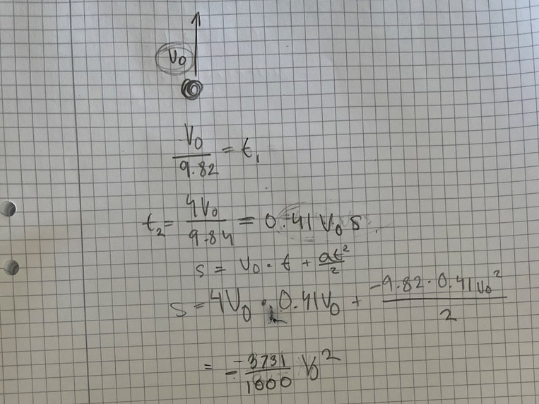 Jag försökte först skriva ett uttryck för tiden det tar för stenen att nå toppen. Sedan försökte jag sätta in det uttrycket i sträcka accelerationsformeln, men mitt svar blir jättekonstigt.