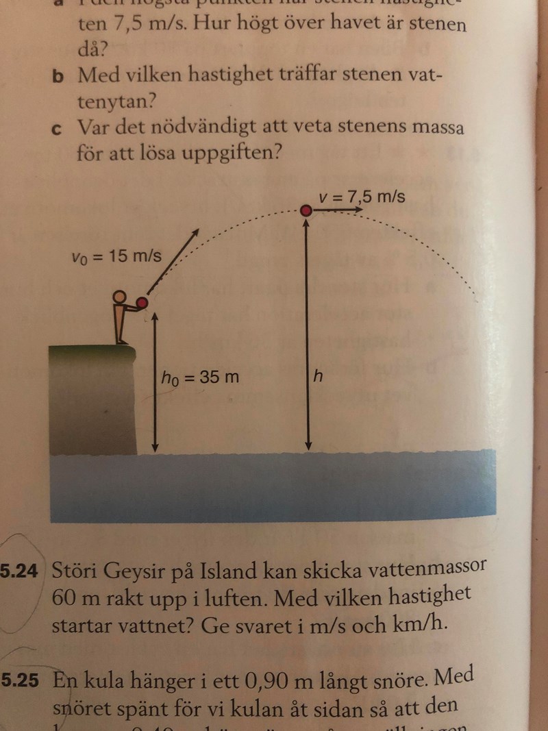 Hur högt över havet är stenen? Uppgift 5.23 a) liber fysik1