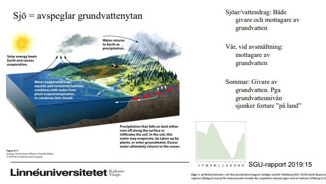 Har fått en slide där det tycks som att vattenivån i en sjö kan utröna grundvatennivån, eller snarare att dess förändringar i vattennivå kan spegla grundvattnets. Förstår inte riktigt att tolka det hela, tacksam för all hjälp!