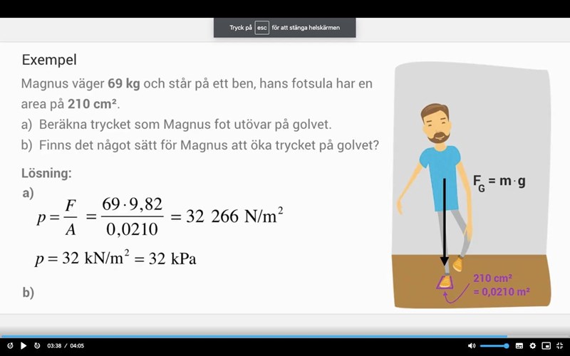 I videon förklarar dom att om han står på ett tå så minskar arean? Men jag förstår inte hur arean kan minska??? Golvet blir ju inte mindre för att han står på tå????? Sedan säger dom att annat alternativ är om han ökar tyngden så ökar trycker på golvet. Men han har ju samma massa som är oförändrad det skulle vara om han tog tag i något som har en mycket massa och höll i den så skulle tyngdkraften öka???