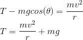 Alltså när vinkeln är noll relativt det nedersta läget så får vi att snörkraften är summan av tyngdkraften och centripetalkraften.