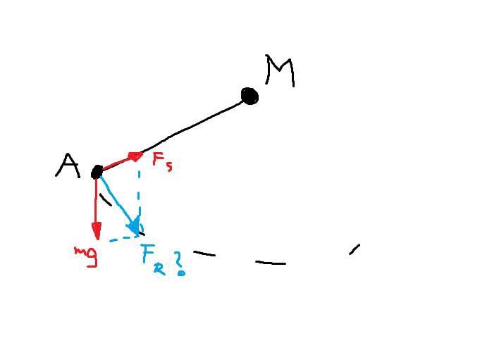 Och centripetalkraften är ju resultanten av alla andra krafter som verkar på föremålet. I detta fallet är det ju föremålets tyngdkraft (mg) och snörkraften (FS) som verkar på det, men resultanten av dem (FR) blir ju inte riktad mot centrum, i samma riktning som snöret. Ska den inte vara det? Det känns som om jag har missat något.