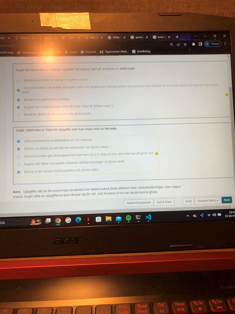 Har jag kryssat i för många? Jag har tänkt vad att det är möjligt (vilket oxå står i frågan) att använda while sats och for sats även om det inte är lämpligt.