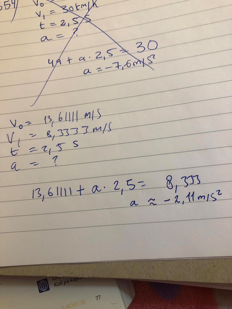 Kan jag svara att retardationen är ”-2.1m/s^2”