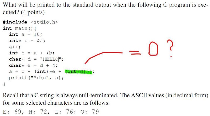 Jag förstår i princip allting utom varför på näst sista raden (int)d[5] är = 0 ?
