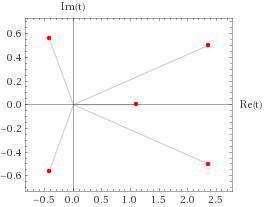 Ekvationen har fem rötter varav en reell och fyra komplexa