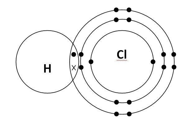 Mitt svar: Det som håller samman atomerna i elektronformeln är den kovalenta bindningen som uppstått mellan atomerna. Väte har 1 valenselektron totalt medan Kloratomen har 7 valenselektroner. Alla atomer vill nå ädelgasstruktur eftersom genom ädelgasstrukturen är atomen som mest stabil. Väteatomen saknar en valens elektron för att få fyllt yttre elektronskal och det gör även kloratomen. Därför bildar de en kovalent bindning tillsammans, en kovalent bindning är en bindning där två atomer (i detta fall) delar ett elektronpar tillsammans, vilket medför att de båda har fyllt yttre elektronskal och är stabila.