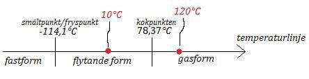 Hur kan man avgöra vilken aggregations tillstånd etanol har vid 10 grader och 120 grader.