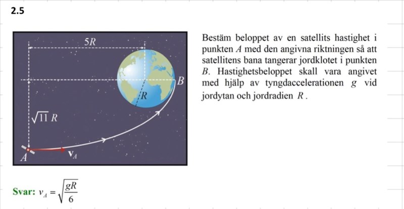Laguna skrev:Om satelliten är en satellit så går den i en sluten bana och då är banan elliptisk. Man kan bevisa det eller bara lära sig det. Vad står det mer i uppgiften?
