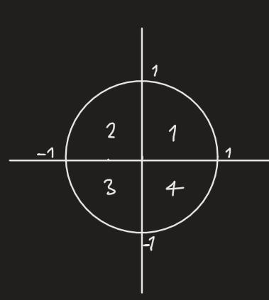 Sin värdet är 0. Men ska man inte börja räkna med att y värdet är 1, därefter roterar man 360 grader