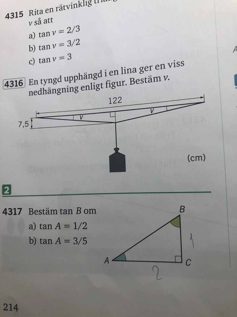 vinkel B = 63,43 grader. Det är här jag fastnar. Hur kan jag omvandla 63,43 grader till tan B?