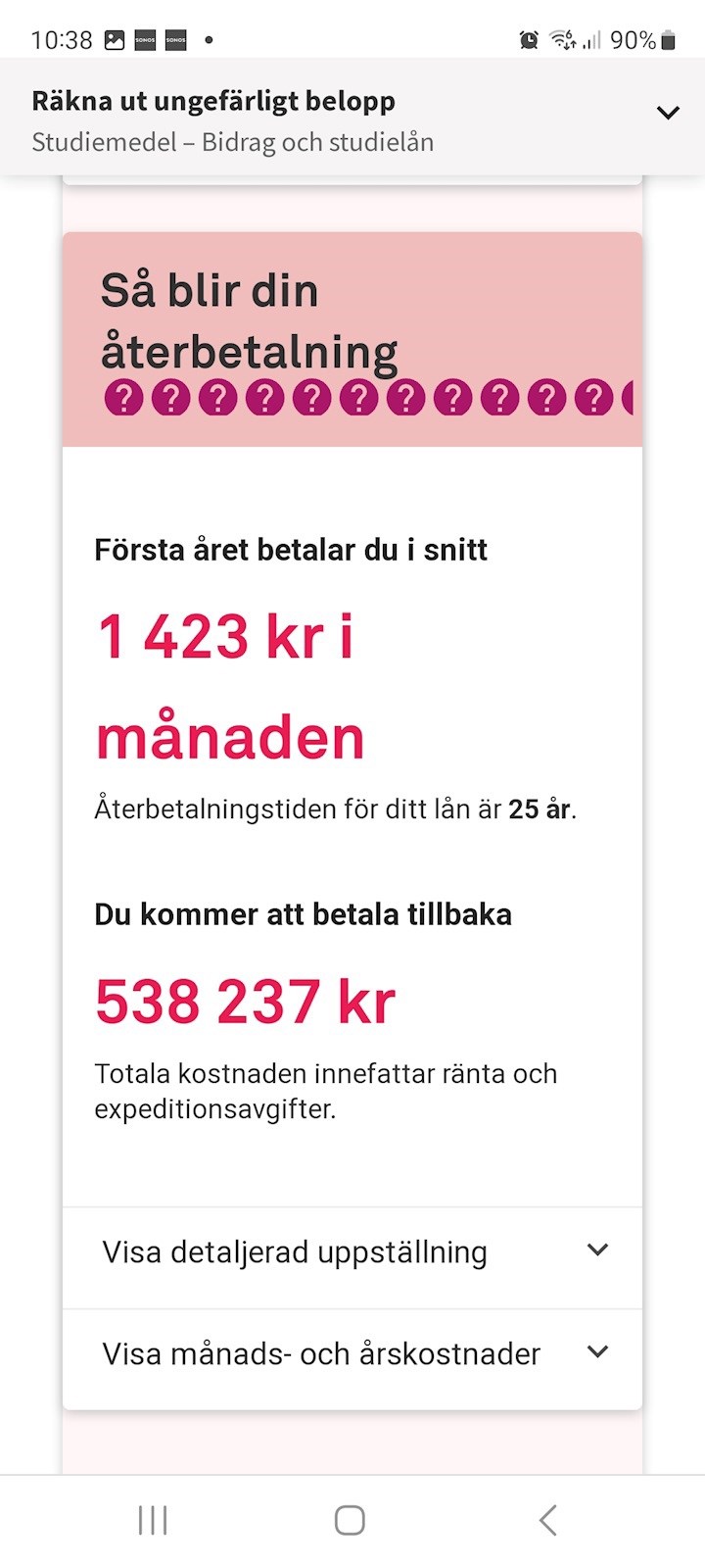 Jag vet inte vad du menar att du vill räkna på. Hur mycket bidrag och lån du kan ta? eller Vad räntan blir på x antal år.