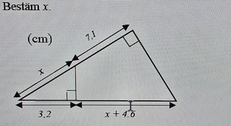 MrPotatohead skrev:Du har fått två likformiga trianglar. Rita de separat från den figuren du har där med sidlängderna korrekt utskrivna. Därefter blir det mycket tydligare hur du kan ställa upp dina likformiga samband.