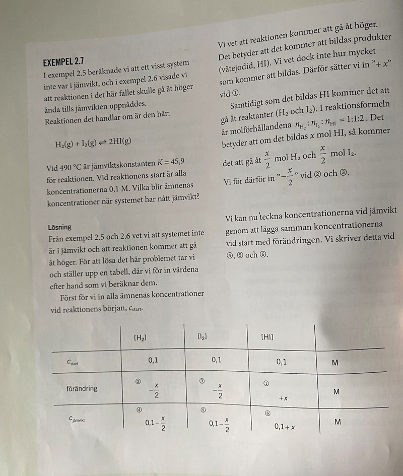Samt varför står det +x ska det inte stå +2x då det är 2HI?