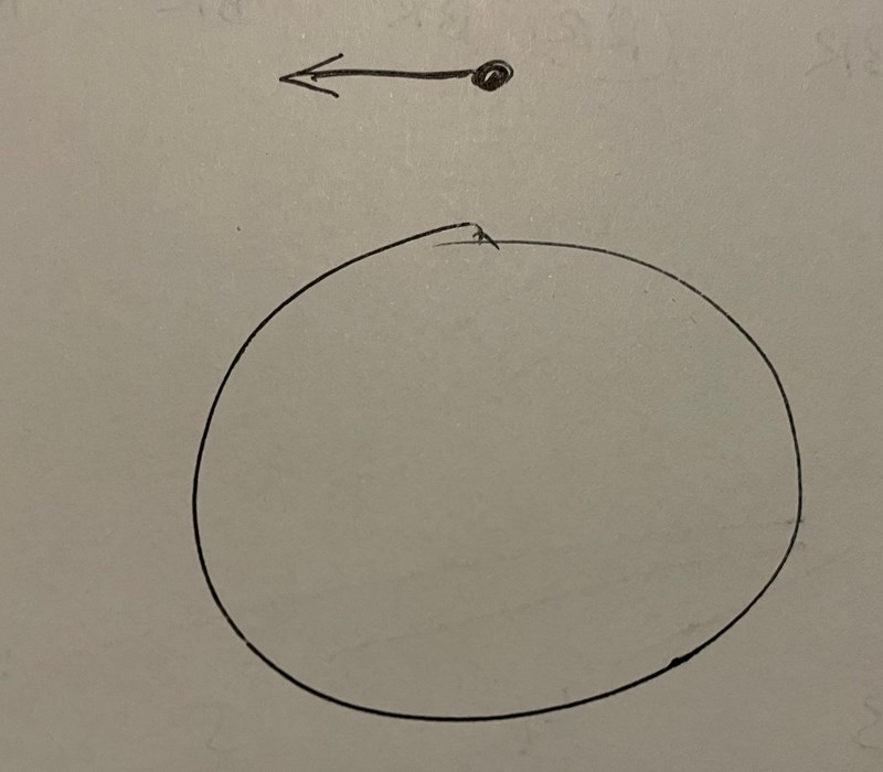 Som du ser måste den svänga nedåt mot Jorden för att inte flyga iväg. Den kraft som gör att den svänger nedåt är dragningskraften.