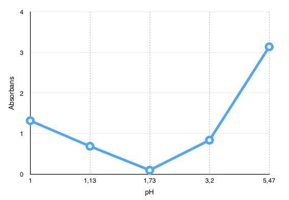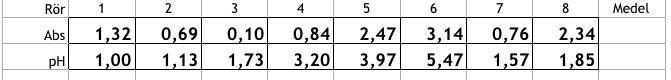 Har du provat att rita en kurva over hur absorbans och pH hänger ihop? Rita den först utan rör 7 och rita sedan in den punkten och se vad som händer.
