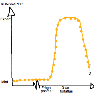 Vi har också en otroligt vässad googlingsförmåga. Jag har flertalet gånger öppnat trådar, googlat fram svaret, läst i några källor, och skrivit ett svar. Detta diagram illustrerar mycket väl hur kunskaperna varierar över tid: