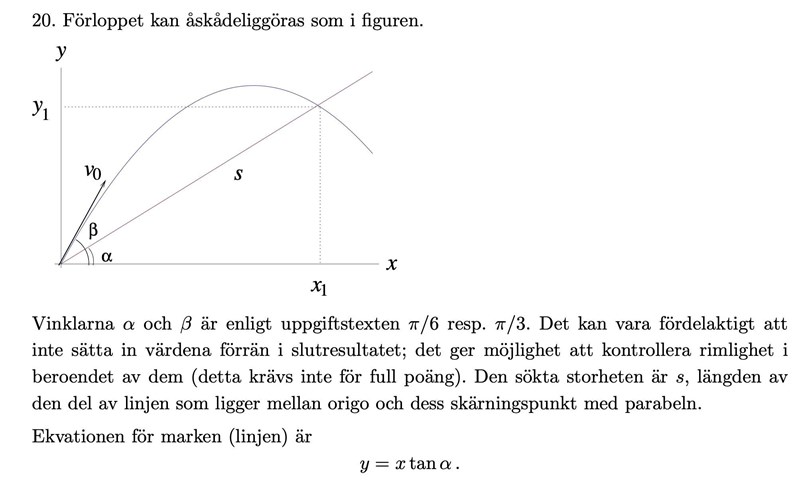 RandomUsername skrev:punkten där linjerna skär varandra har koordinaten y. Samma punkt har koordinaten x. Med trigonometri får du att y/x = tan a där y = xtan a