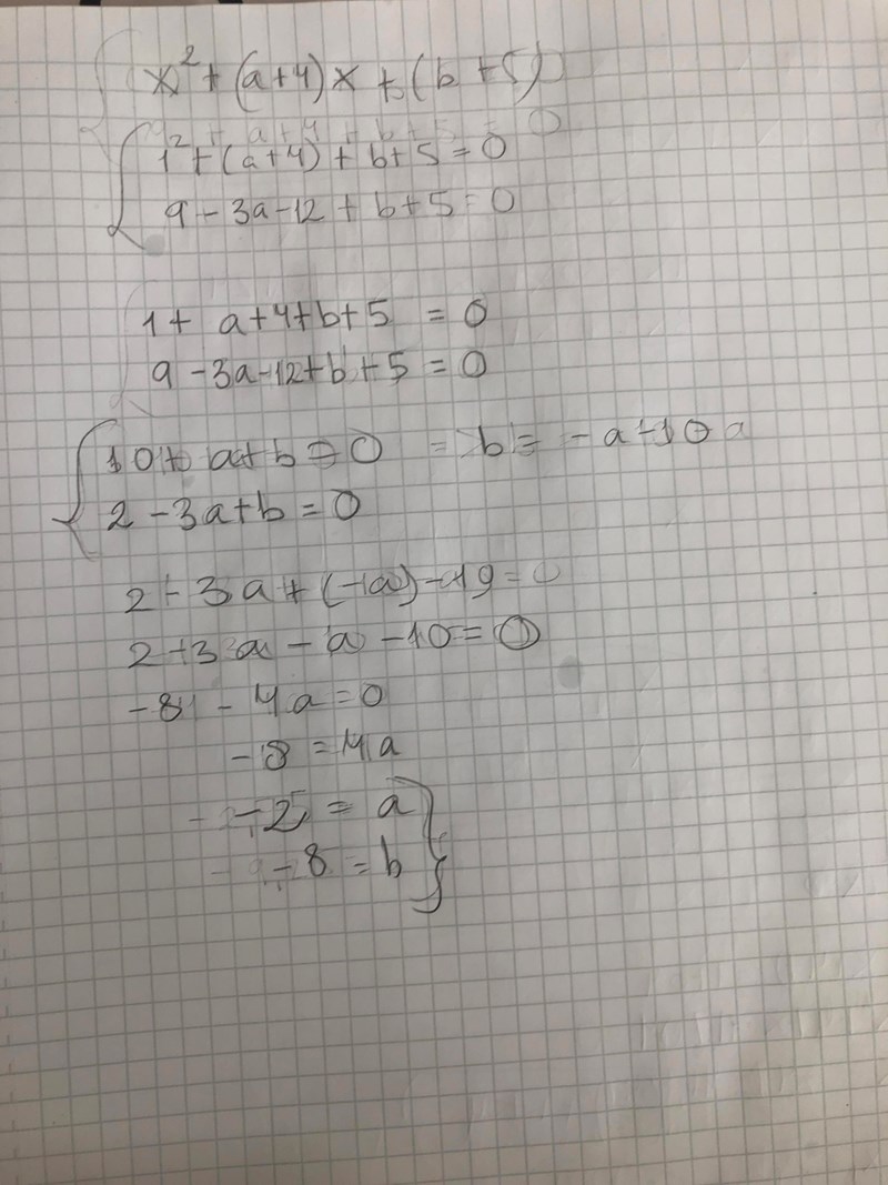 Du har kommit fram till att a måste vara -2 och b måste vara -8, för att ekvationen