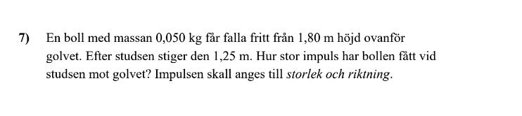 Men det borde visst gå att få ut hastigheten precis innan studsen. All lägesenergi är ju då omvandlad till rörelseenergi så mv2/2=mgh där h=1,8 m.