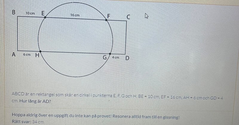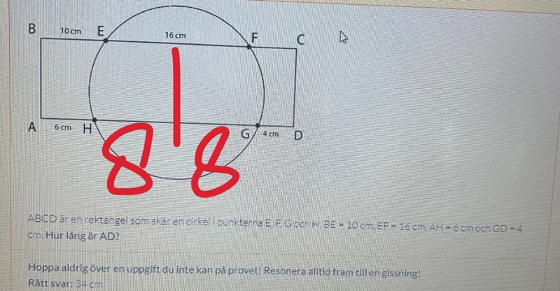Laguna skrev:Dra en hjälplinje vertikalt genom cirkelns mittpunkt.
