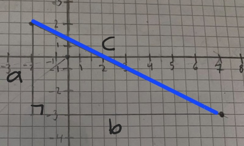 - Rita en linje mellan de två punkterna. Denna linje ska snart bli hypotenusan I en rätvinklig triangel.