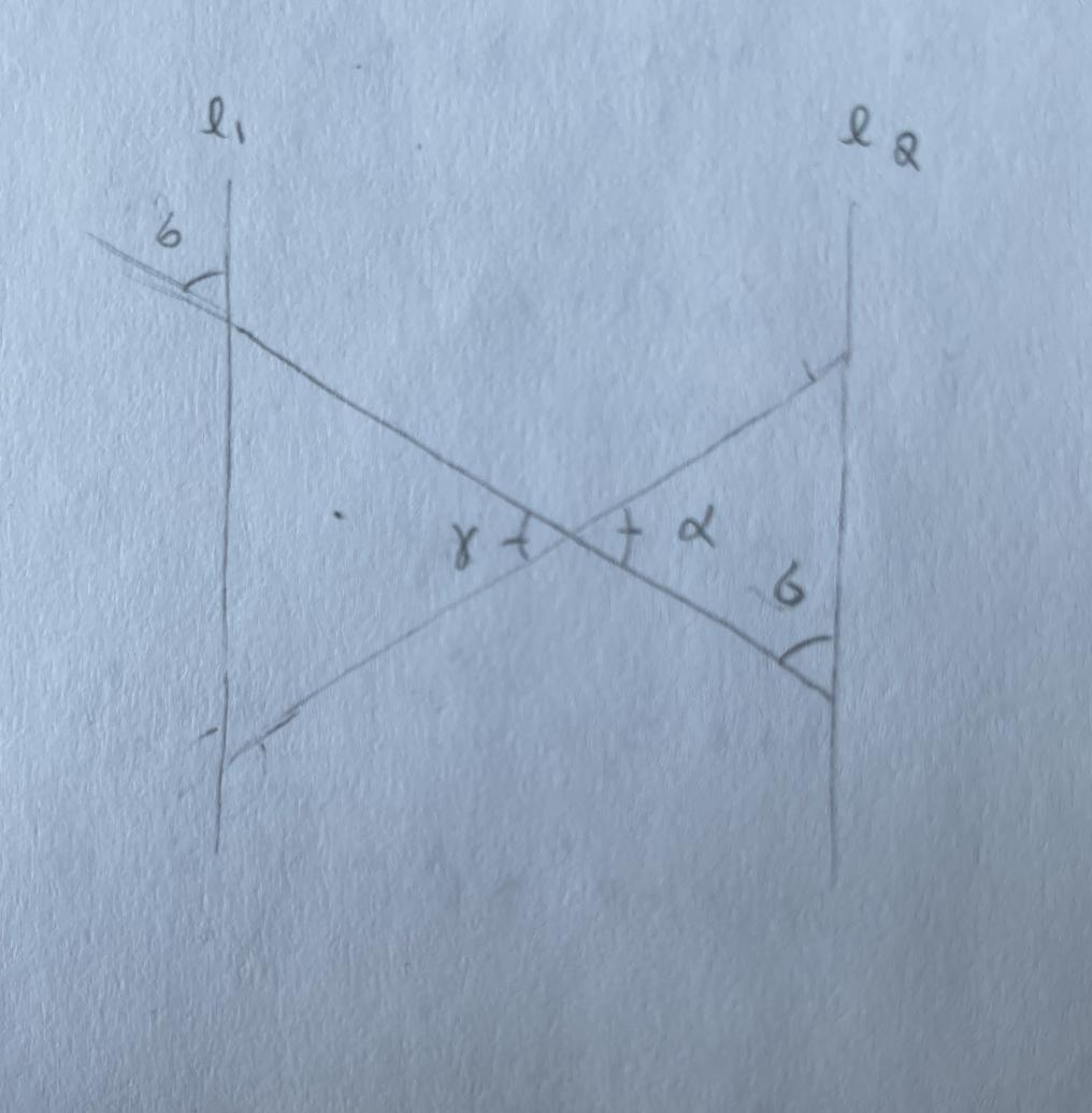 Om man har två parallella linjer så är alternatvinklarna lika. Repetition från Ma2.