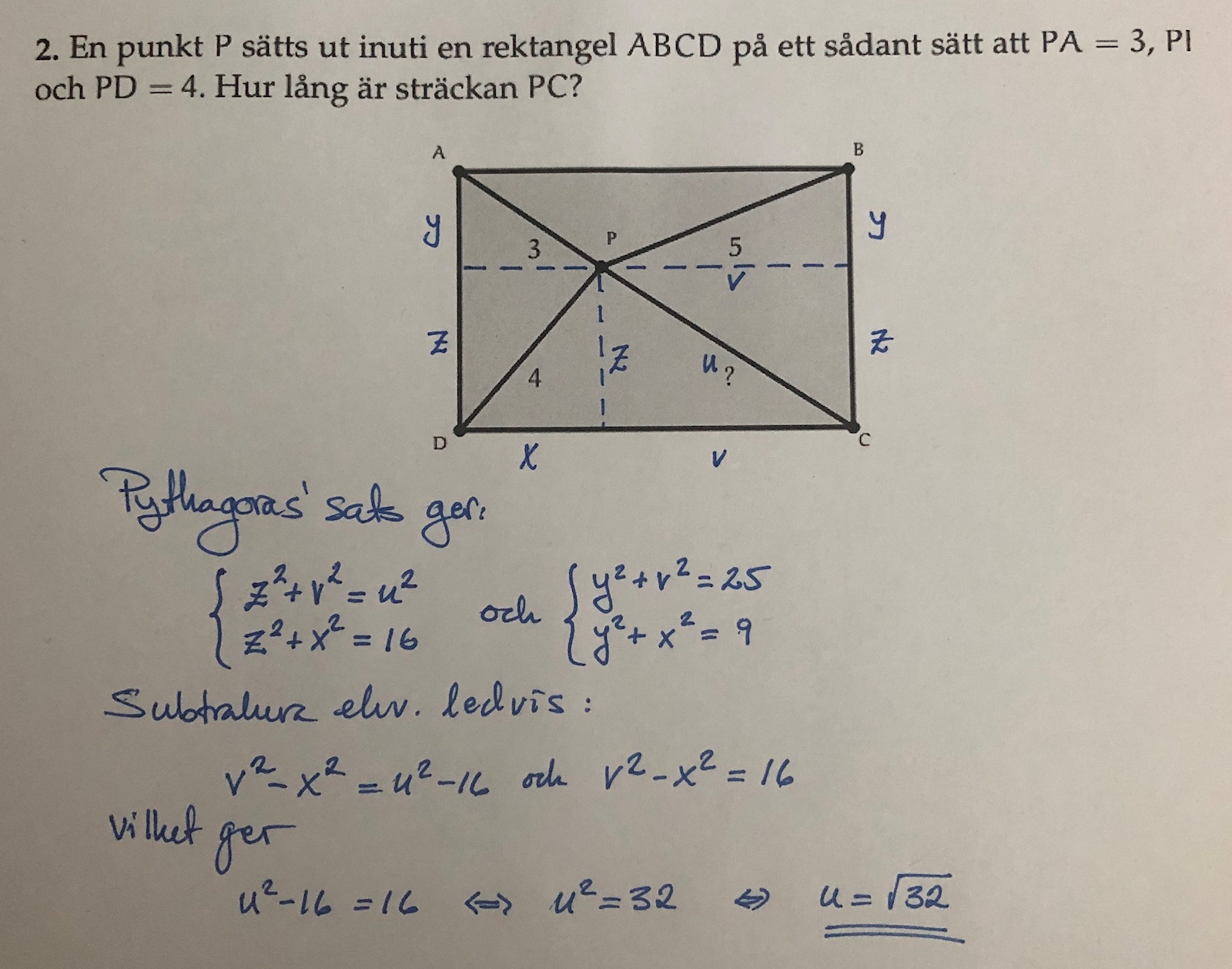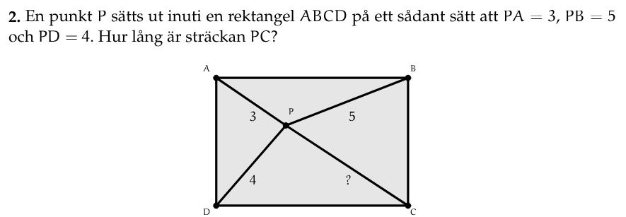 samt en vertikal linje. Sedan leta efter rätvinkliga trianglar för att applicera pythgaoras