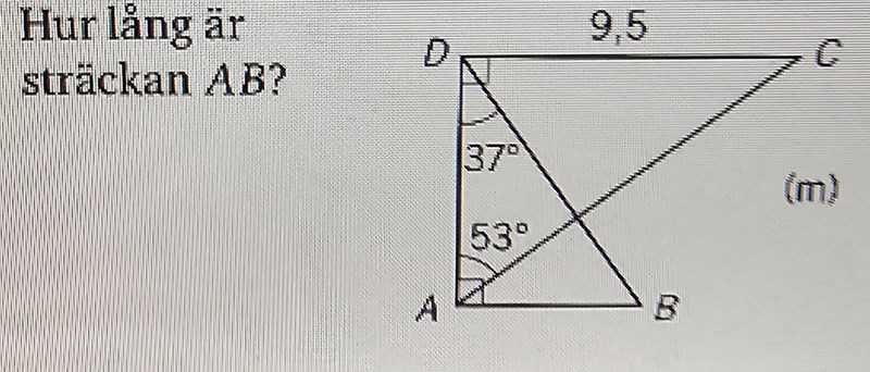 Använd sedan ngt trigonometriskt samband för att beräkna längden av sträckan AD.