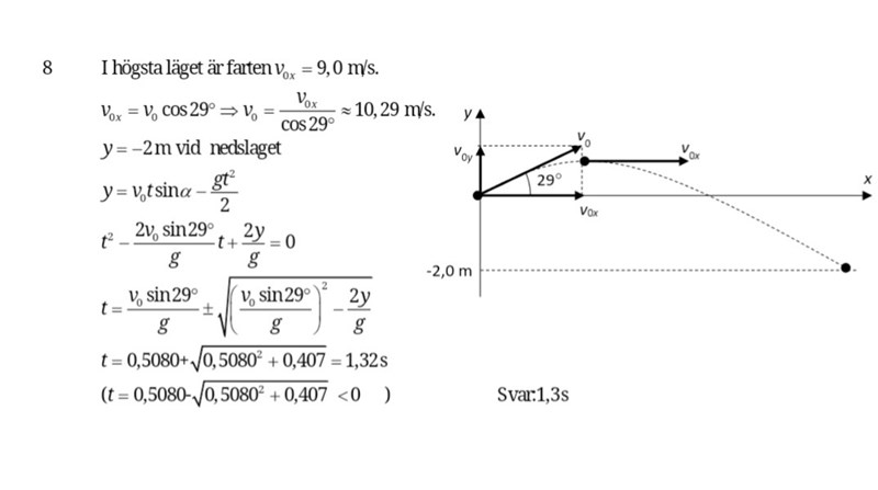 Men frågan lyder ej "beräkna hur lång tid det tar för kulan att nå marken" det är det som stör mig lite för det står istället att vi ska ta reda på hur lång tid kulan är i luften. Aja får bara förstå ur figuren att det är tiden den slår ned i marken de är ute efter.