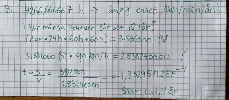 bild 3: kan jag tänka såhär med att omvandla till ”lämplig enhet” från att omvandla timmar till år? Funkar den metoden för det här fallet?