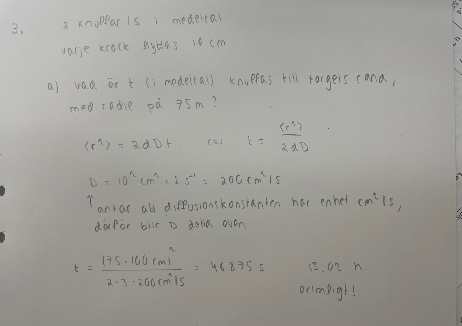 Jag är lite oklar över om jag tänkt rätt, antog att diffusionen är likt nedan. Svarar ju indirekt på fråga b) i mitt svar i a). Se nedan