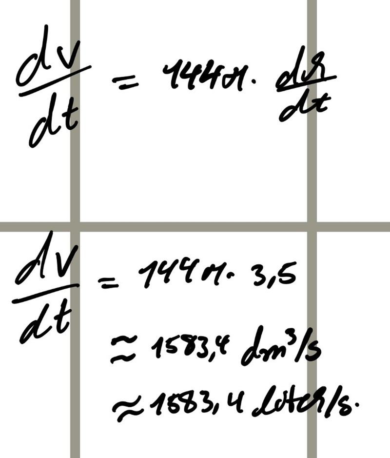 Radiensförändringshastighet är då derivatan av radien med avseende på tiden. Jag vet inte hur jag ska uttrycka det med hjälp av formeln för volymen av ett klot, men själva värdet är 3,5cm/s.