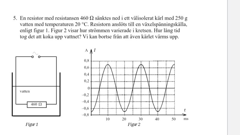 Jag tänker mig P=E/t där E är c*m*deltaT samt P=R*I^2. Men vad är delta T isåfall om den börjar koka från 20 grader?