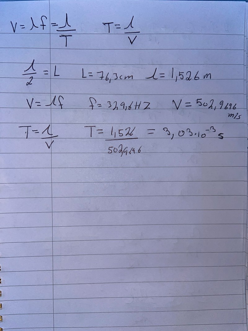 Vi har ju att λ/2=L och L=76,3 cm genom detta kan vi räkna ut λ