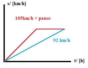 Kanske ska det vara så att sträckan för 105 km/h ska vara där står för pausen som då blir = 0 eftersom sträckan är konstant 0, (farten = 0).