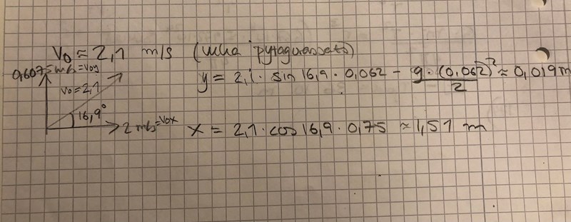 Vilken höjd hann han upp till på (0.75/2) sekunder? Vilken lägesenergi hade han där? Det är den rörelseenergi han hade från början, och på jorden räcker den energin till att...