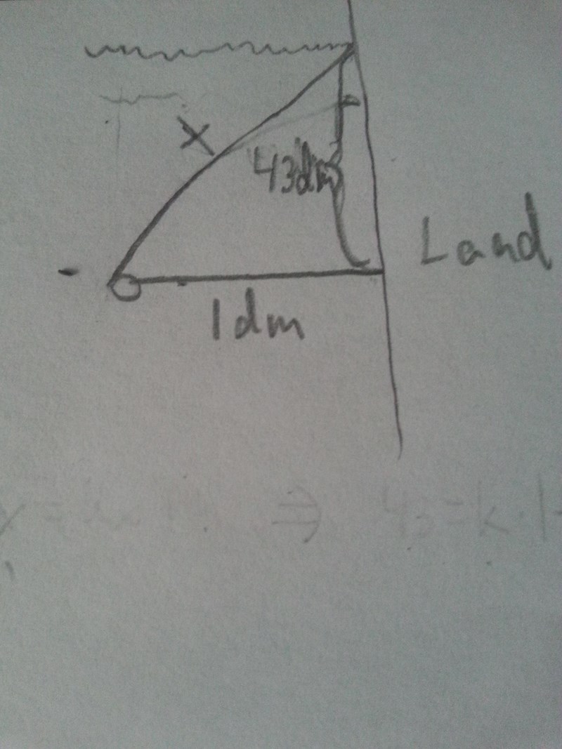 villkor: De ska börja 1dm horisontellt från landytan. Sträcka sig 37-43dm i vertikalled. Räta linjen som kan kopplas på mellan dessa linjer är kättingen. Längden fås ut av Pythagoras.