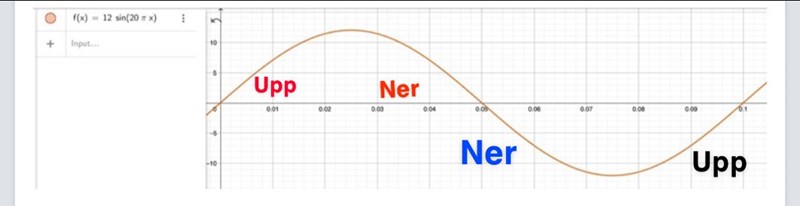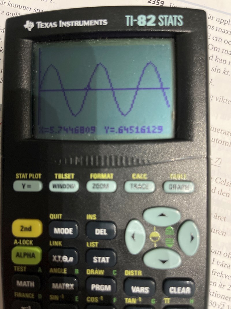 Ja, den går enbart upp och ner. Är det rätt att tänka som jag skrev här att en graf stiger med 12. Når maxpunkten, minskar med 12. når minpunkt, stiger . Osv