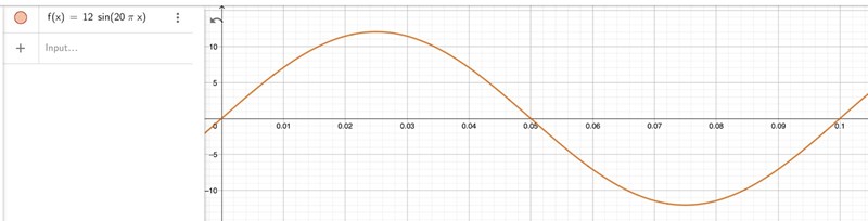 Från origo till den första maxpunkten på bilden är det 12 i yled. Efter maxpunkt så sjunker grafen med 12. Därefter sjunker grafen till -12 för att sedan stiga upp med 12 tills att y=0.